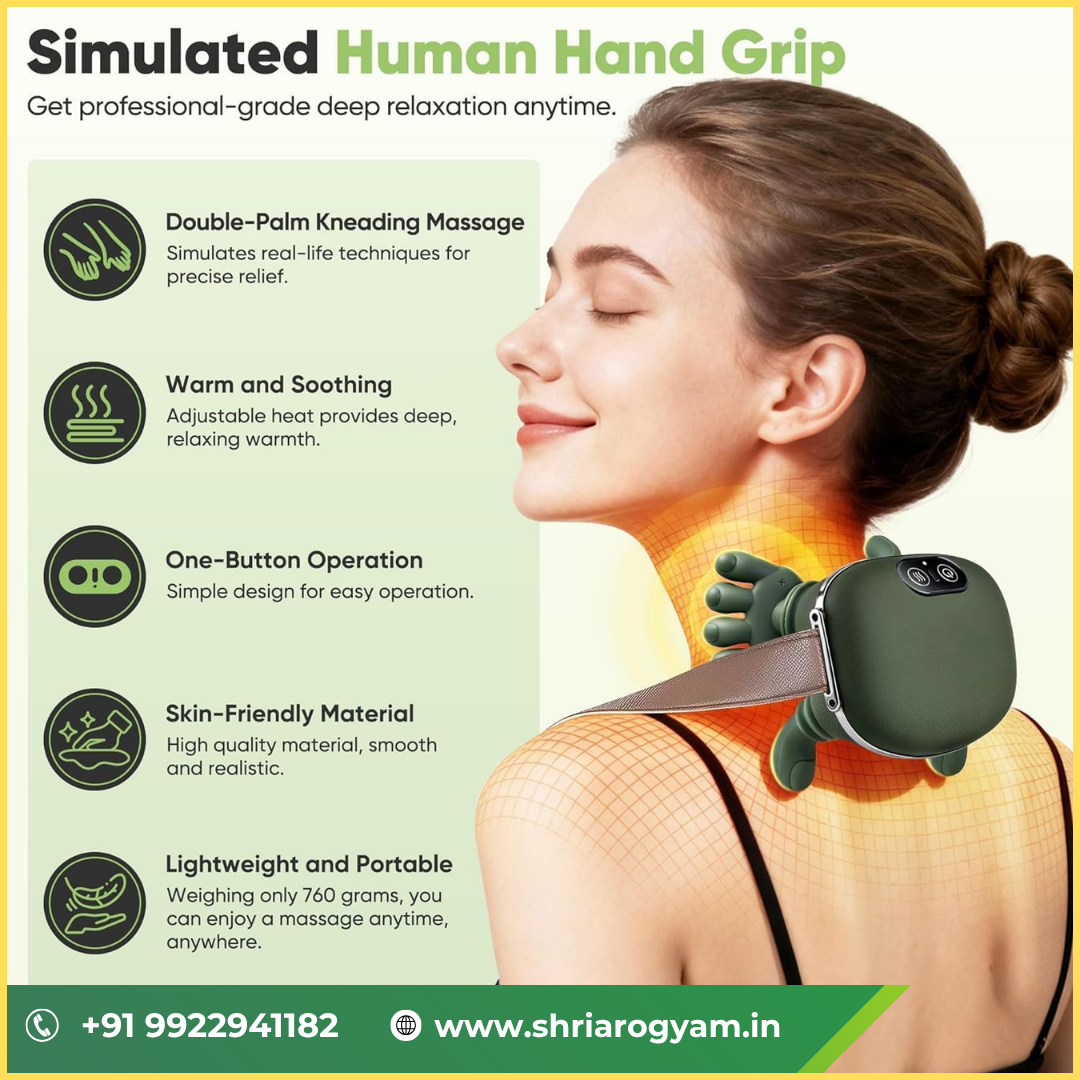 Experience deep relaxation with the Shri Arogyam Bionic Heated Neck Massager, designed to mimic real human hand movements for an effective and soothing massage. Whether you’re dealing with neck stiffness, back pain, or muscle fatigue, this wireless massager delivers instant relief.